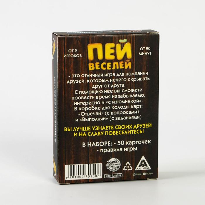 Купить игра для компании "пей веселей" 50 карт от 180 руб. с доставкой до пункта выдачи в Фурманове. Интернет магазин ДекаМаркет. Оплата при получении.